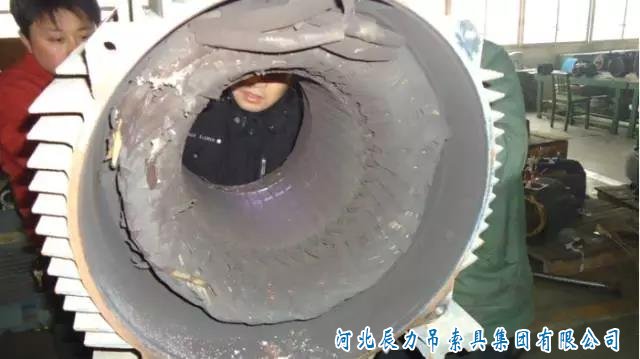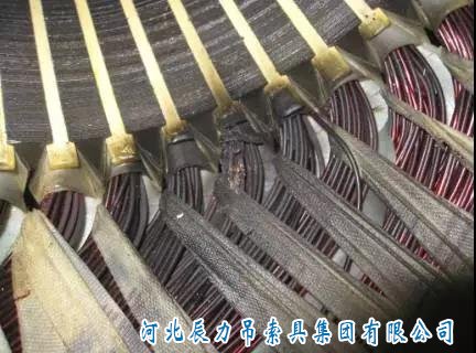 繞組全部變黑色,端部扎帶變色并且變脆甚至斷裂。