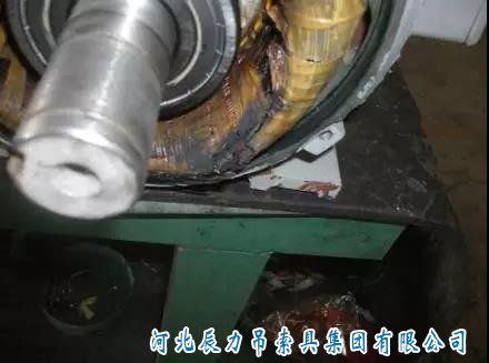 電機兩相相鄰之間燒毀。